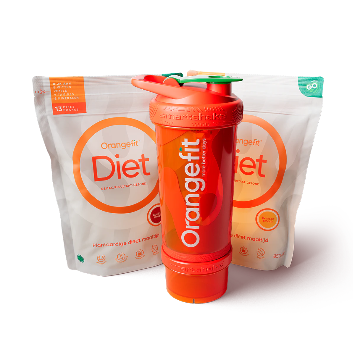 Orangefit Diet wird aus Erbsenprotein (eine vollständige Proteinquelle), Hafermehl, Leinsamen und grünem Tee hergestellt. Jede Mahlzeit enthält 30 % deines täglichen Vitamin- und Mineralstoffbedarfs.