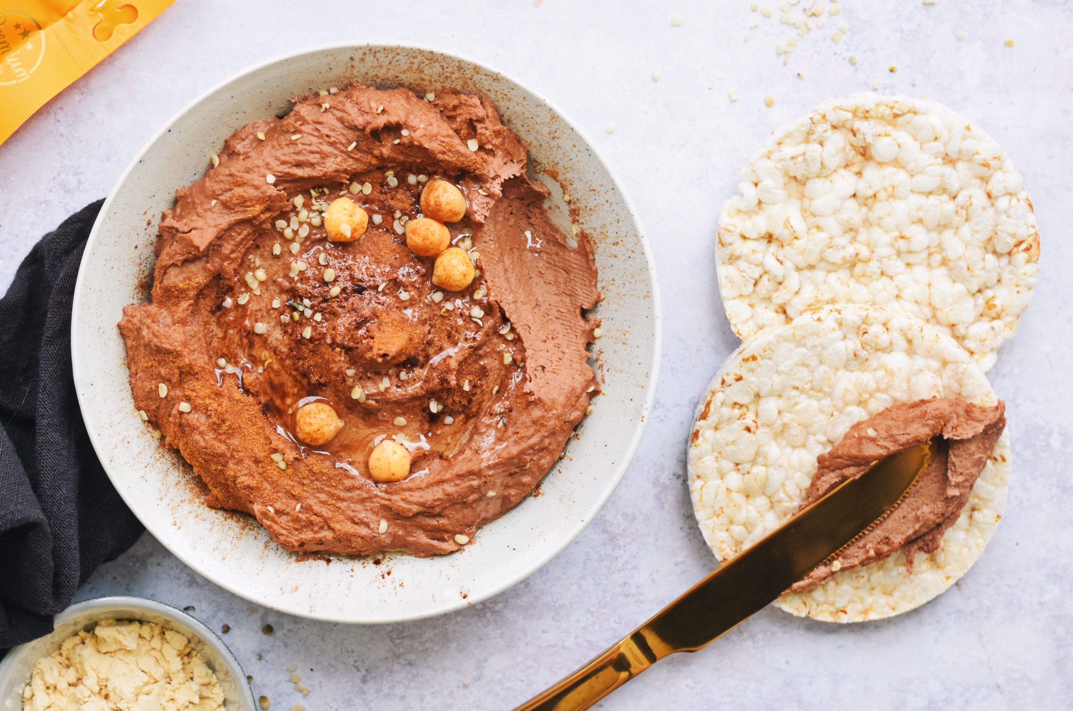 Dieser proteinreiche Schokoladen-Hummus ist so lecker, dass wir ihn am liebsten heimlich auf jedes Brot, Cracker oder Reiswaffel streichen würden. Ein köstlicher proteinreicher Snack für zwischendurch und auch ideal als Brotaufstrich für die Lunchbox deines Kindes.