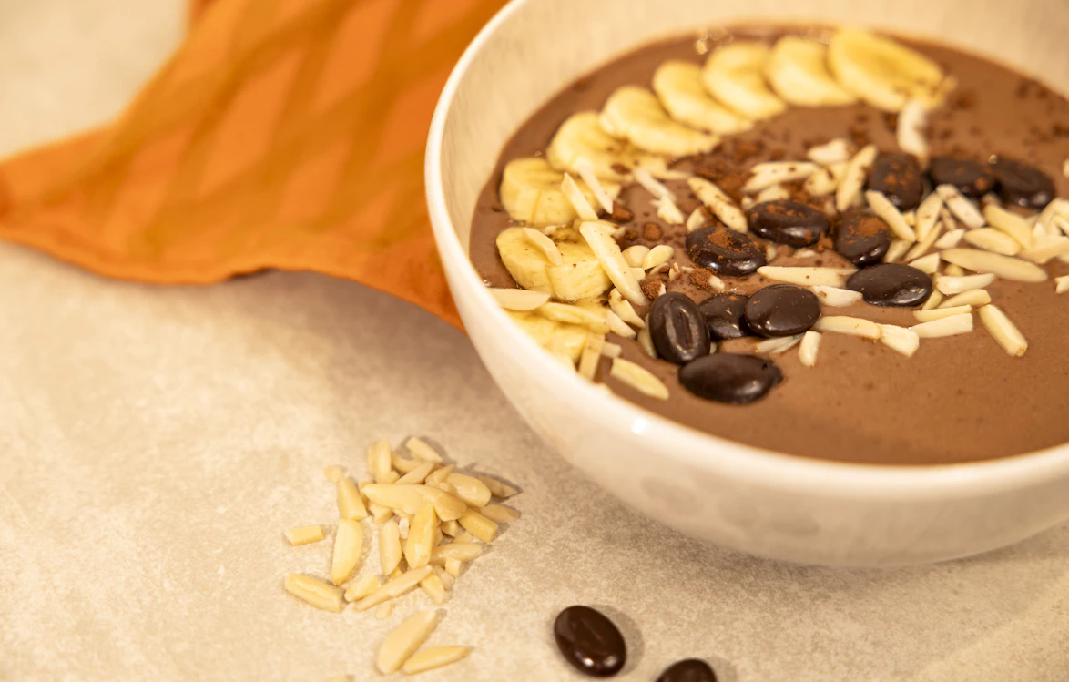 Diese Smoothie Bowl ist gesund, aber schmeckt wie dein Lieblings-Frappuccino. Du machst sie in 5 Minuten fertig. Gibt es einen besseren Start in den Tag?